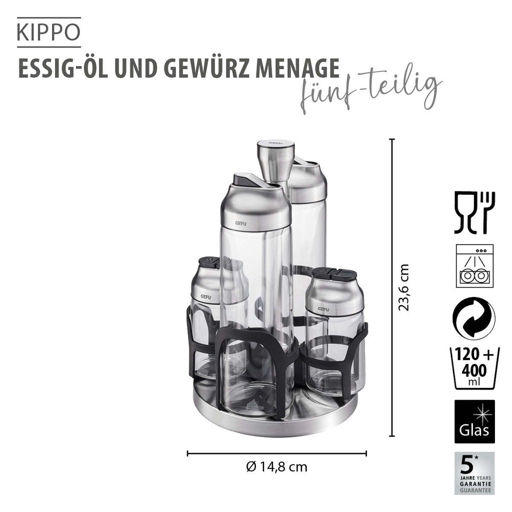 -GEFU- "KIPPO" Essig-Öl und Gewürz Menage, 5-teilig